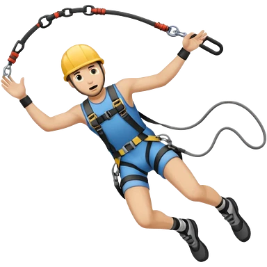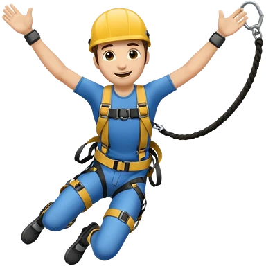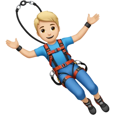 Yellow-skinned man emoji bungee jumping, arms out, rope tied to ankles. emoji