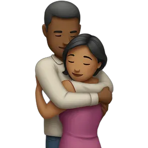 tall white man with curly dark hair hugging white woman with glasses and brown hair emoji