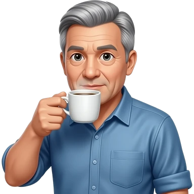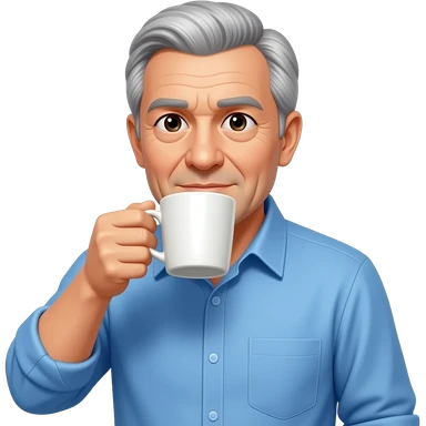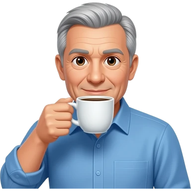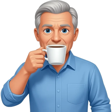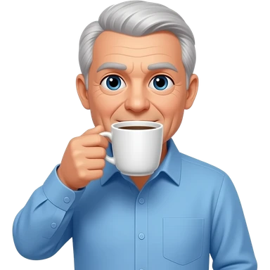 white man in his 60's wearing a blue button down shirt drinking a cup of coffee emoji