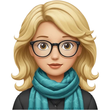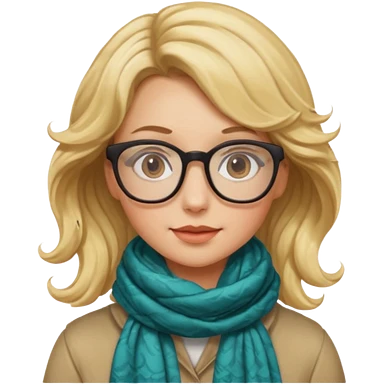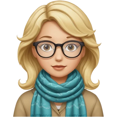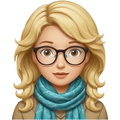 a girl drink with blonde wavy hair, wearing glasses, having scarf emoji
