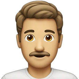 a white man with taper fade curly hair and a little moustache and a beard on chin emoji