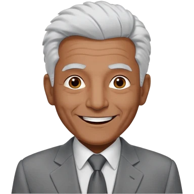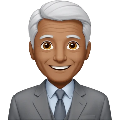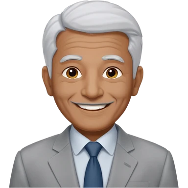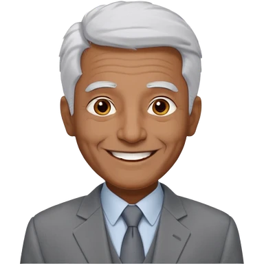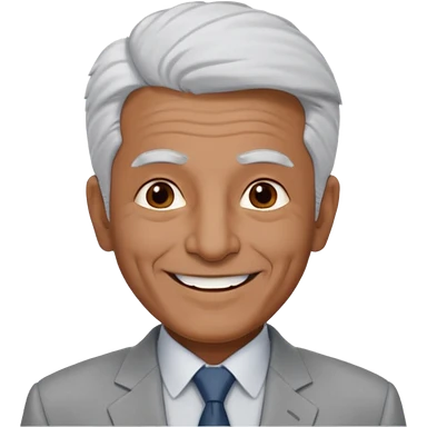 70 yr old man, very short spike white hair, pakistani, light grey business suit, big smile, dark skin, no facial hair emoji