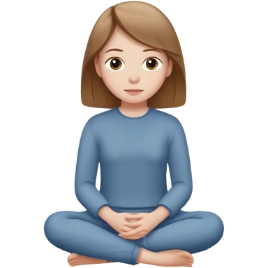 A person sitting still with their hand gently placed on their chest. A soft, warm light begins to emerge from within, symbolizingAround them, faint, blurred images of childhood moments float in the air, still distant slowly clearer as they focus on present emoji