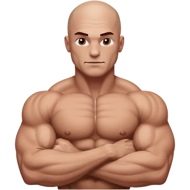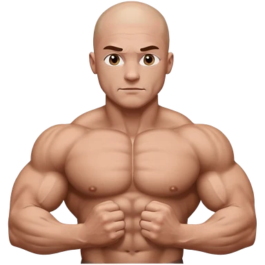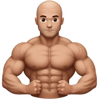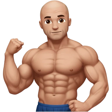 White skin, Shirtless, a lot of brown hair on the chest, Bodybuilder, big biceps and shoulders. Bald head emoji