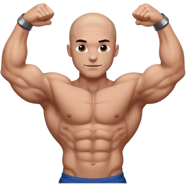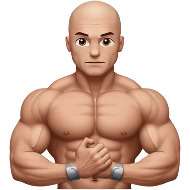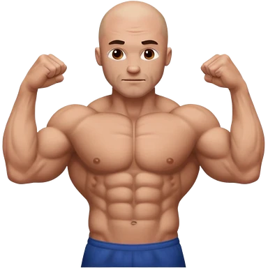 White skin, Shirtless, brown hairy chest, Bodybuilder, big biceps and shoulders. Bald head emoji
