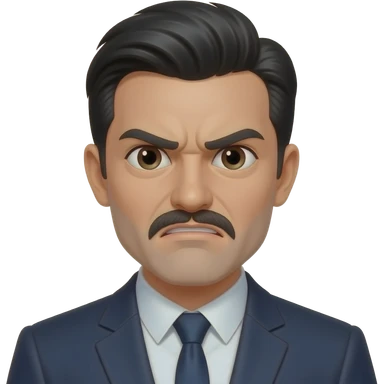 White man with black hair and small mustache right under is nose about a inch in length wearing a suit with his and up and make him look frustrated emoji