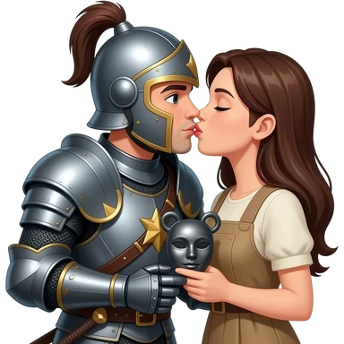 A fighter worior man kissing with his girlfriend take mask to the warior emoji