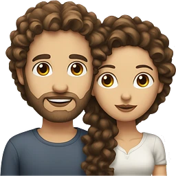 White woman with long dark brown curly hair kissing white man with brown hair and stubble emoji
