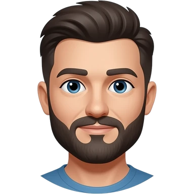 White man with dark beard, dark hair that's faded on elliptical emoji
