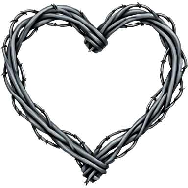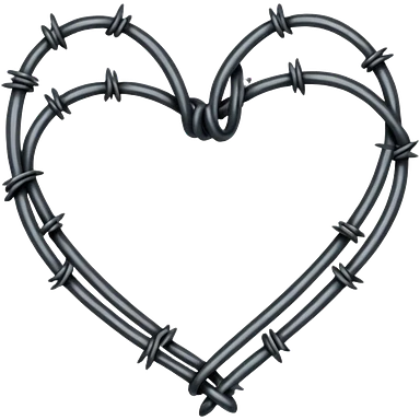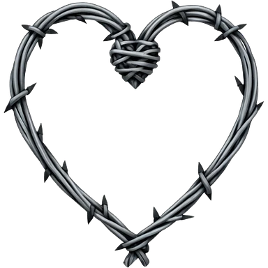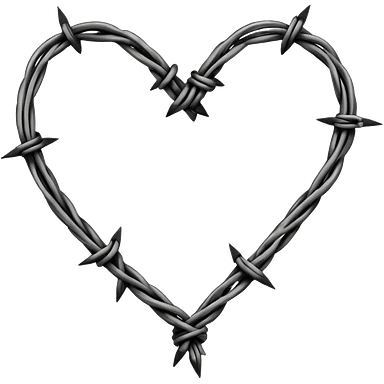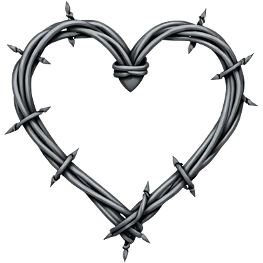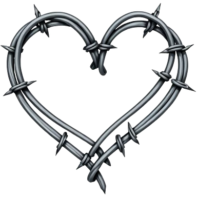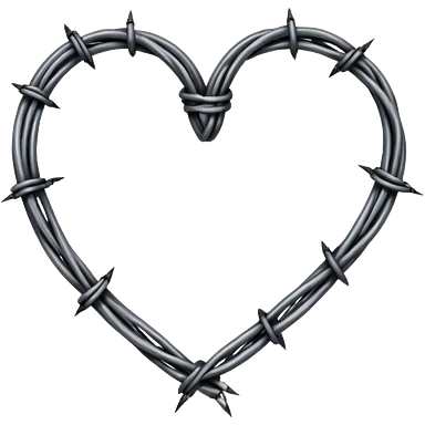 Minimal black line art heart made from barbed wire, hand-drawn sketch look, uneven ink strokes, 6–7 barbs with twisted knots, simple clean outline, centered on plain white background, high contrast emoji