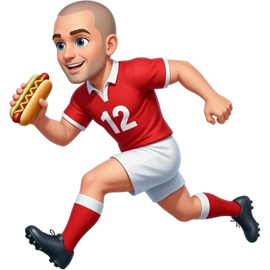 white man with shaved head winning at rugby with a hot dog emoji | AI Emoji Generator