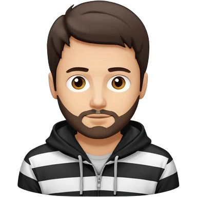 White Man with short dark brown hair and stubble beard, black and white stripped hoodie emoji