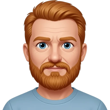 Man with short ginger hair with some grey hairs in and a long ginger beard wearing a blue collared shirt emoji