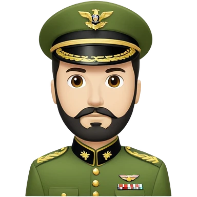 A white military officer in a green uniform whit a small black beard over his mouth emoji