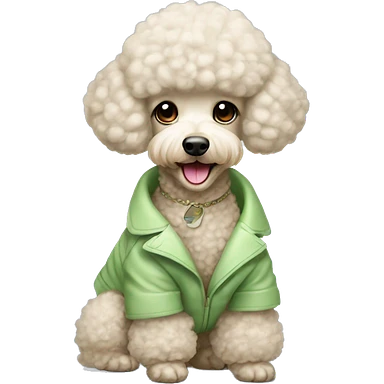 Happy Beige mini poodle with asian haircut in light green coat with white fur emoji