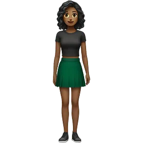 Pretty mixed Asian black girl with long wavy hair wearing a baby blue and white plaid mini skirt emoji