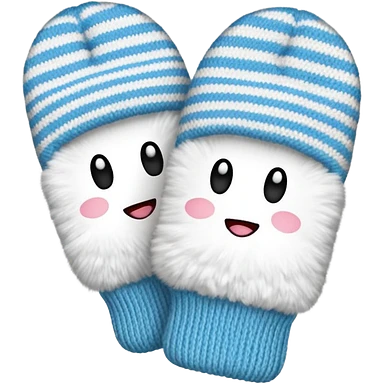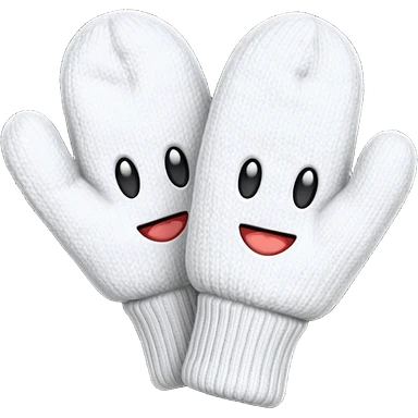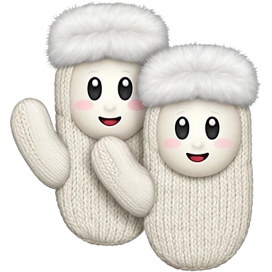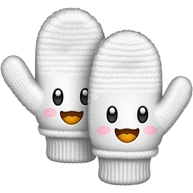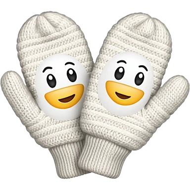 A pair of cozy knitted white mittens with a snowflake design emoji