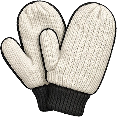 A pair of creme cozy knitted white mittens with a snowflake design emoji