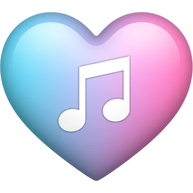 A white music note inside of a pastel blue purple and pink gradient heart emoji