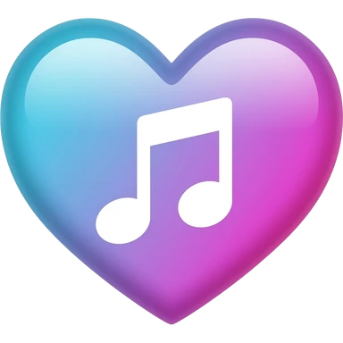 A white music note inside of a pastel purple and pink gradient heart emoji