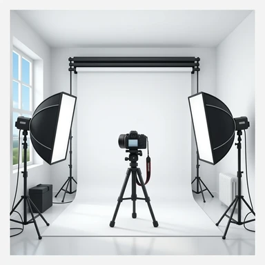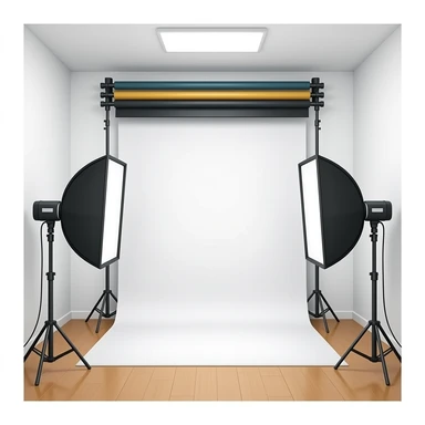 indoor white photography studio with camera equipment emoji