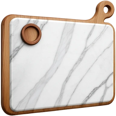white marmor cuttingboard with a wooden grip all along the top side emoji