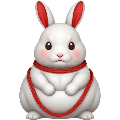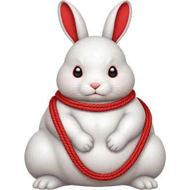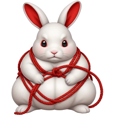 White realistic fat bunny with lots of thick red shibari ropes tightly wrapped around emoji