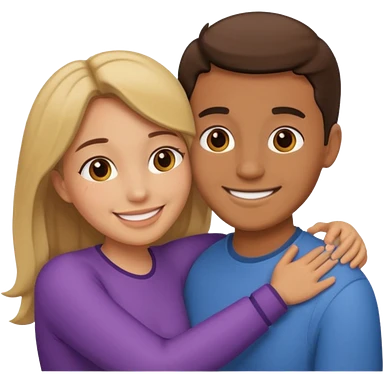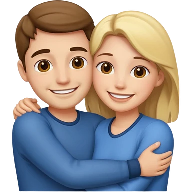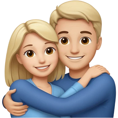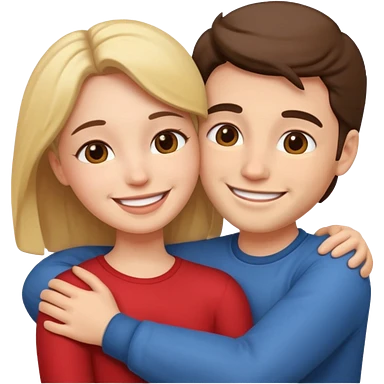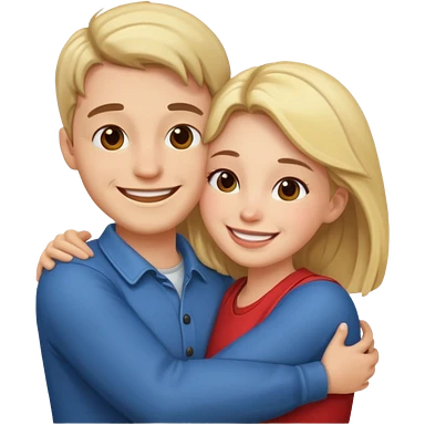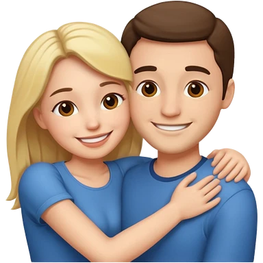 White realistic couple dark ref hair girl and blond men hugs emoji | AI Emoji Generator
