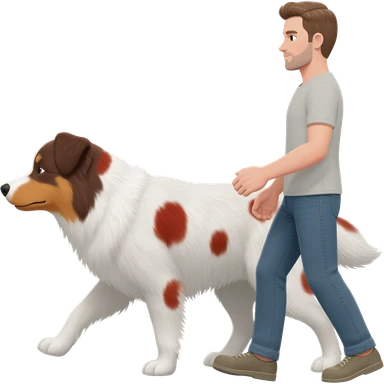 A man dog walker with an Aussie white with red and brown staines emoji