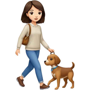 white dog walking with owner (Asian girl with straight black hair) emoji