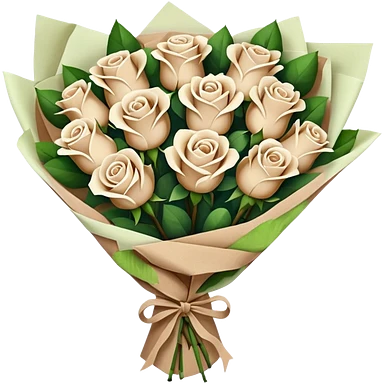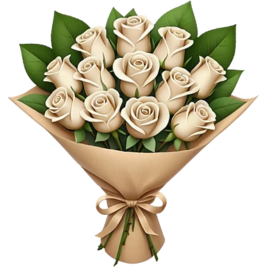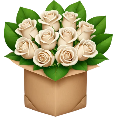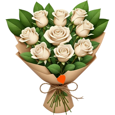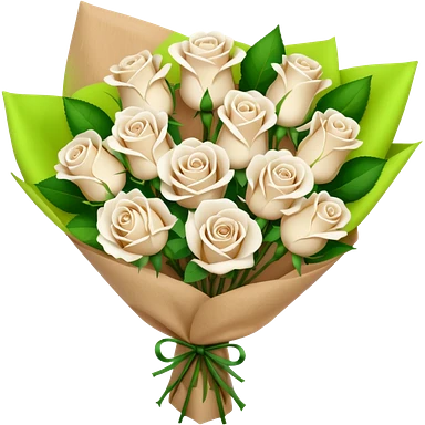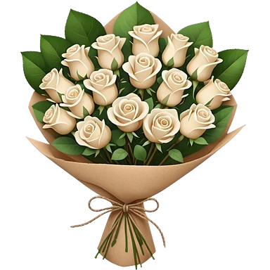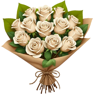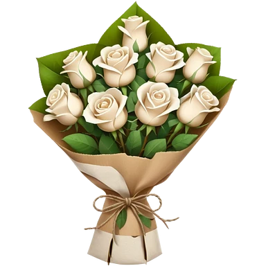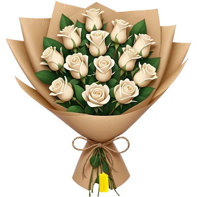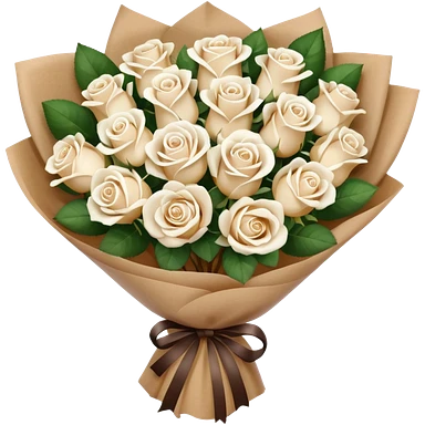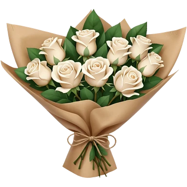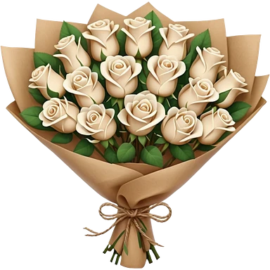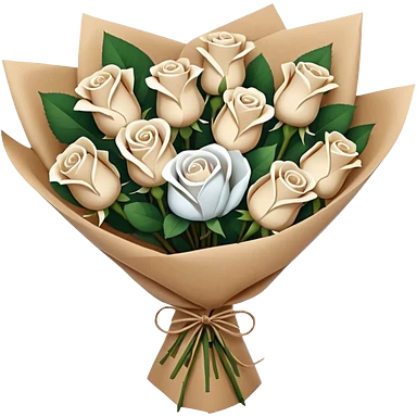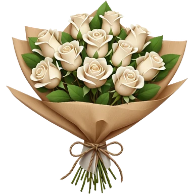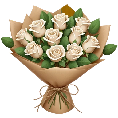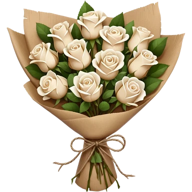 white roses bouquet in brown paper emoji
