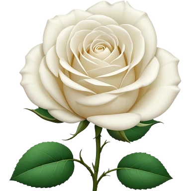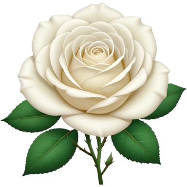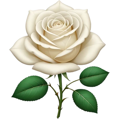 Generate a high-quality image of a single rose flower with stem and leaves, with very small and subtle thorns, realistic color and shading, smooth gradient colors, no human figures, no facial features, no brand markings, simple white background, high-resolution. emoji