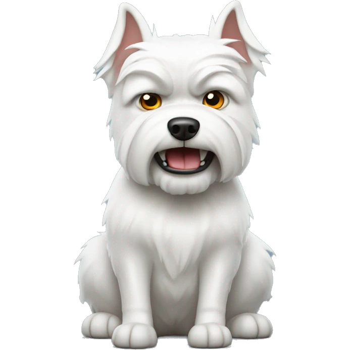 Black cattle dog with pointy ears and white be stripe down nose and spotty chest emoji