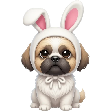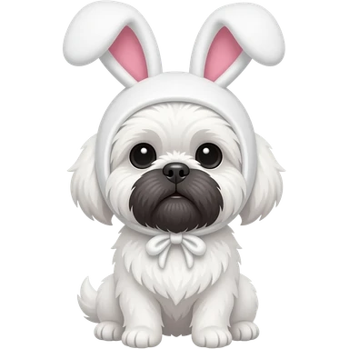 White Shih Tzu, faint brown/gray ears, with a bunny hat emoji | AI Emoji Generator