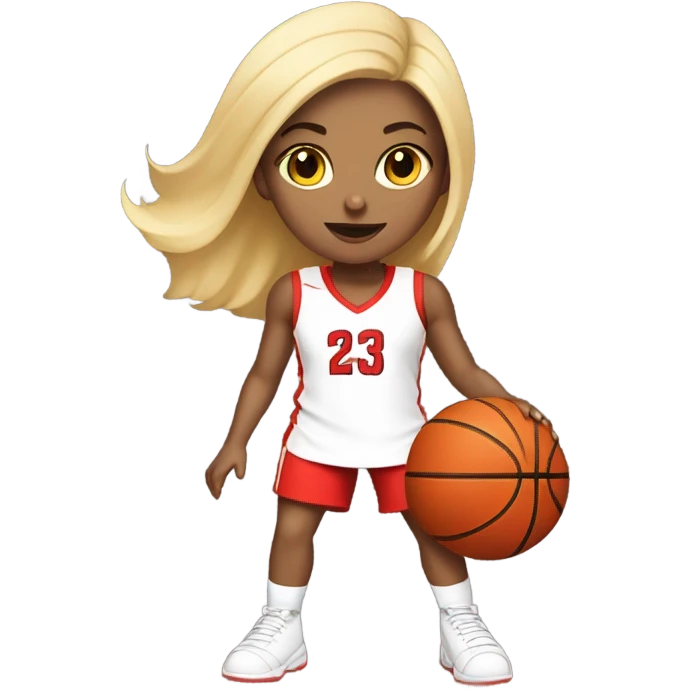 white skin blond girl in red costume playing basket ball emoji | AI Emoji Generator