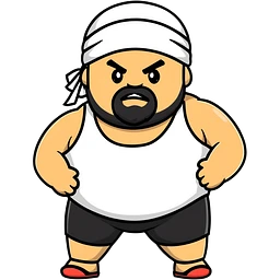 White skin fat guy with black durag, beard and mustache in wrestling singlet emoji | AI Emoji Generator