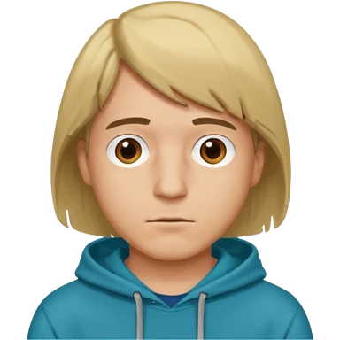 Dirty blonde guy with brown eyes dark aqua blue hoodie and hair with the shape of a bob cut emoji