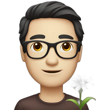white skin guy with dark hair and glasses gives a bouquet of flowers emoji | AI Emoji Generator