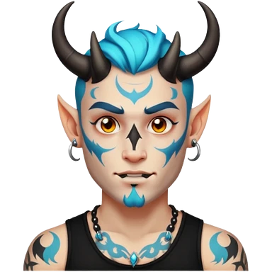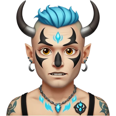 white skin Rock-style man — piercings, glowing tattoos on face, black horns emoji