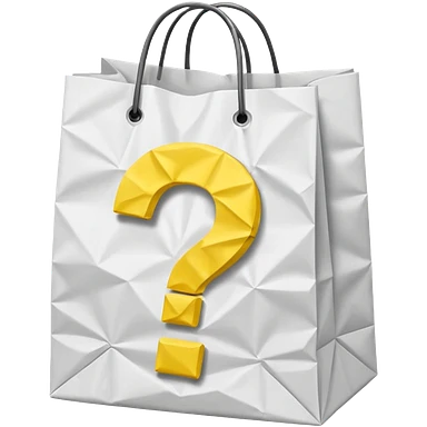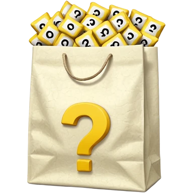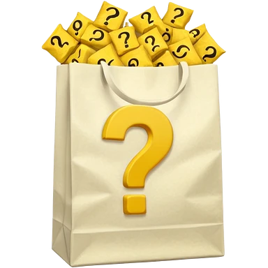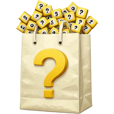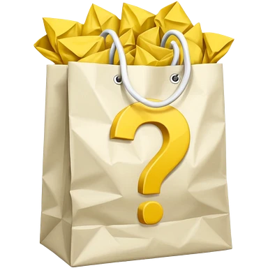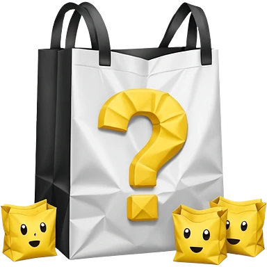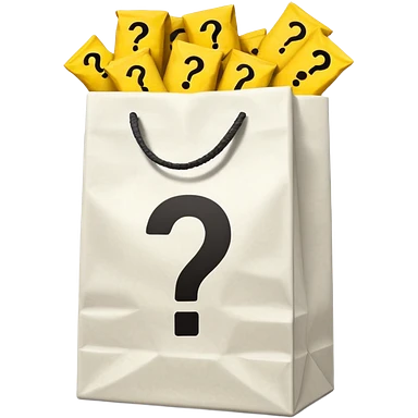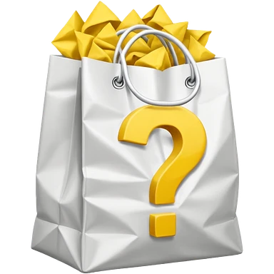 crumbled white goodiebag with yellow questions mark boxes stuffed in it emoji
