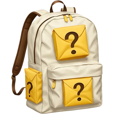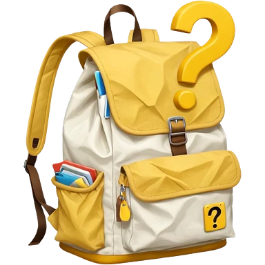 crumbled White backpack with yellow questions mark boxes stuffed in it emoji