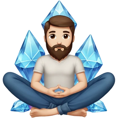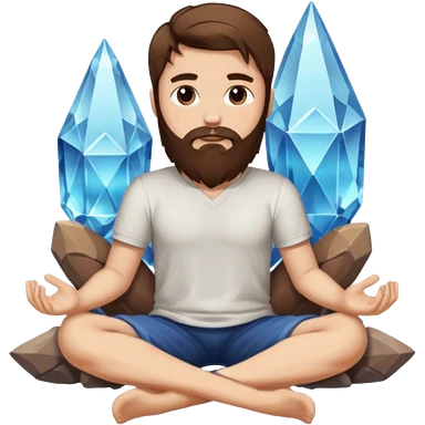 full body man long brown hair brown eyes medium beard white skin sitting cross-legged growing crystals from ground emoji