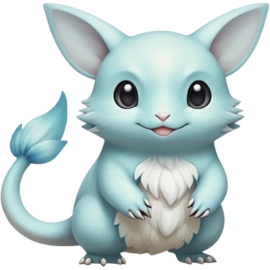 White soft natural realistic romantic vintage antique divine beautiful elegant pretty precious cute young youthful Fakémon-Pokémon-alien-opossum-feline-rodent-hybrid-creature (full body) emoji