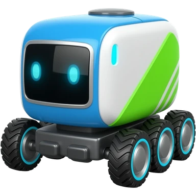 Delivery blue & white & green square with 6 wheels blue led eyes emoji