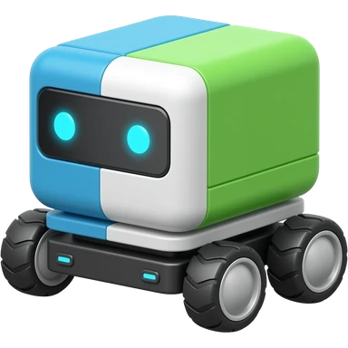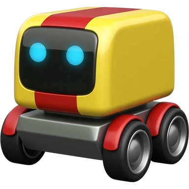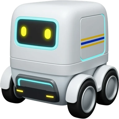 White solid delivery robot with 2 wheels at the front and 2 big wheels on the back emoji | AI Emoji Generator
