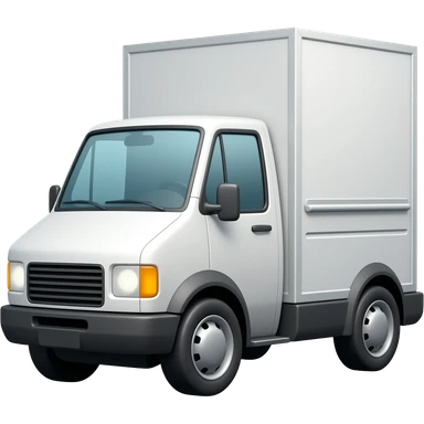 3D Apple-style emoji of a small delivery truck with a box container, simple wheels, and a shipping logo. Rounded, glossy, smooth, soft shadows, white background. emoji