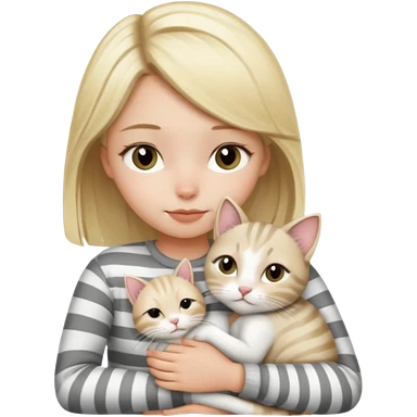 Short hair Blonde girl snuggling white gray white striped cat emoji