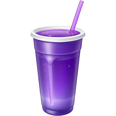 White styro with purple juice inside visible from the top only. Add a stoned yellow emoji face that os holding the cup emoji