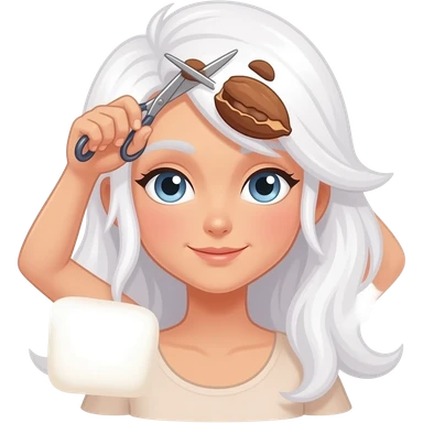 White hair cut with cocoa and naked cocoa marshmallows emoji