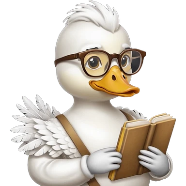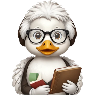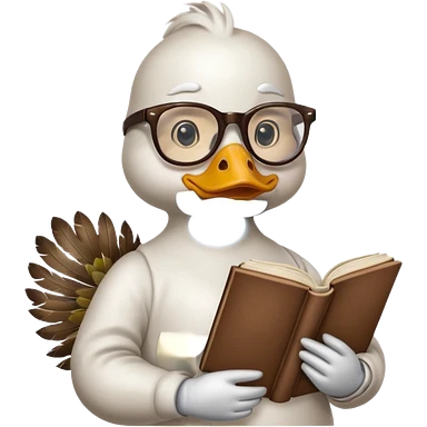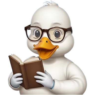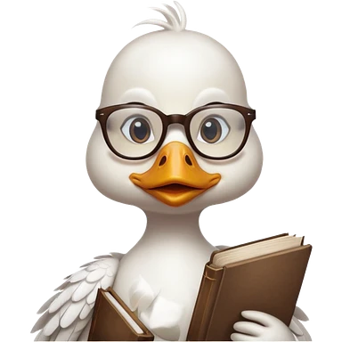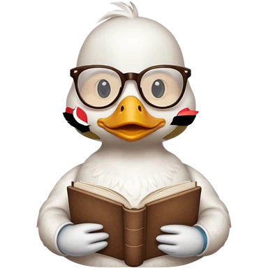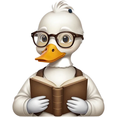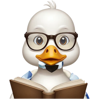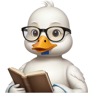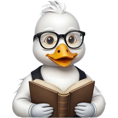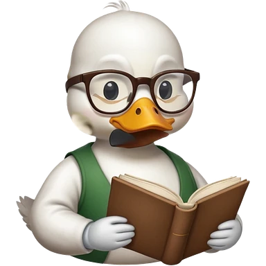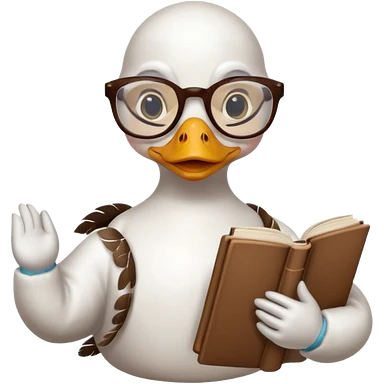 white duck holding book wearing glasses emoji